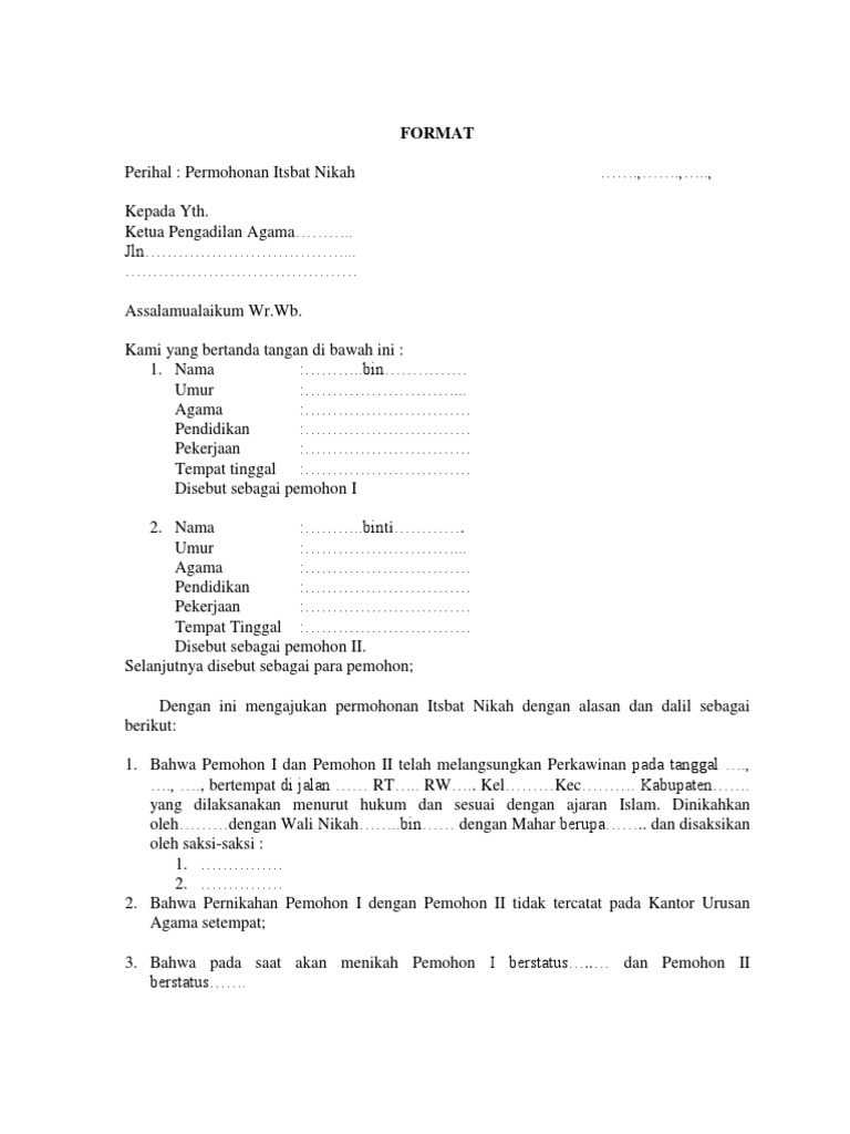 Contoh Format Permohonan Itsbat Nikah Voluntair