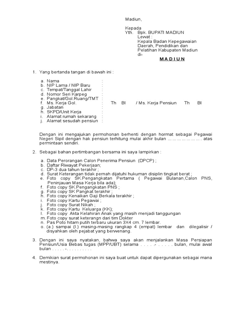 Contoh Surat Pengajuan Pensiun Dini Pns Fill Online Printable Fillable Blank Pdffiller